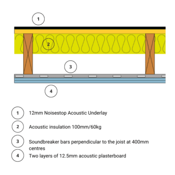 The Part E Timber Floor Underlay & Ceiling System is designed for timber joist floors and ceilings.