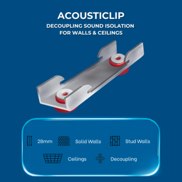 It’s an essential component in our AcoustiClip systems, delivering reliable acoustic performance for stud walls, ceilings, and partition upgrades.