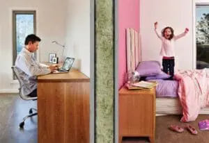 Achieve higher levels of wall sound insulation with different acoustic materials. The right product combinations will effectively block a broader range of sounds from transferring through walls.